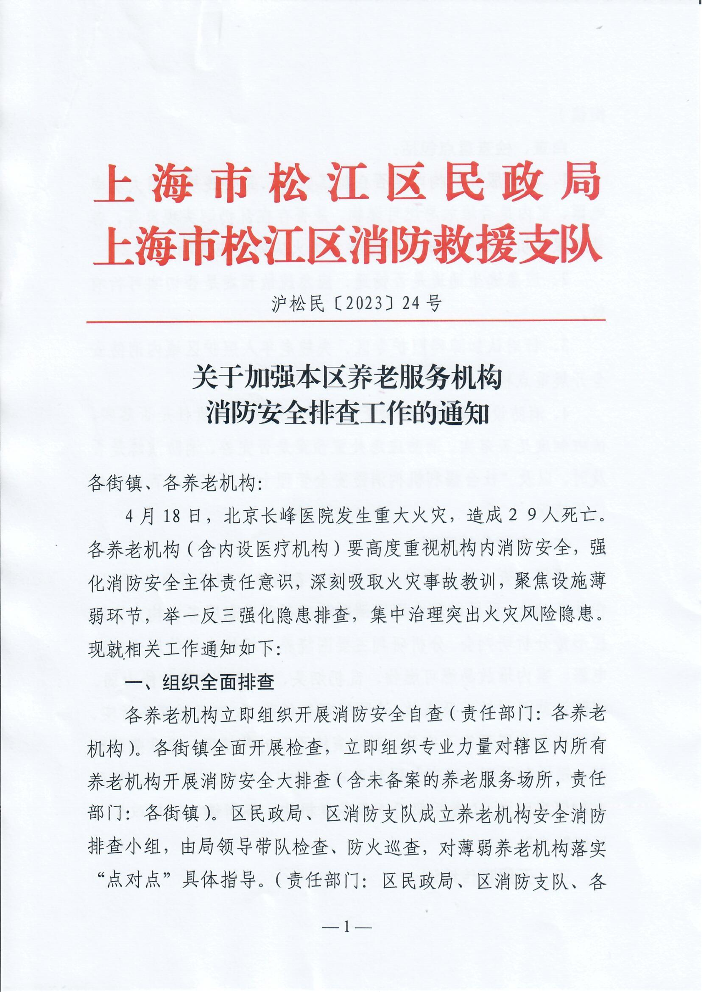 4月18日,北京长峰医院发生重大火灾,造成29人死亡。各养老机构(含内设医疗机构)要高度重视机构内消防安全,强化消防安全主体责任意识,深刻吸取火灾事故教训,聚焦设施薄弱环节,举一反三强化隐患排查,集中治理突出火灾风险隐患。现就相关工作通知如下: