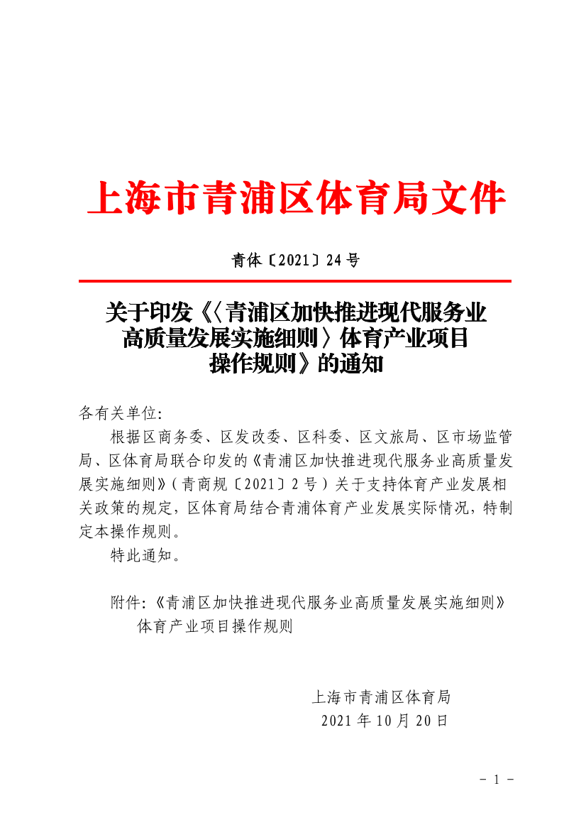 关于印发《〈青浦区加快推进现代服务业高质量发展实施细则〉体育产业项目操作规则》的通知