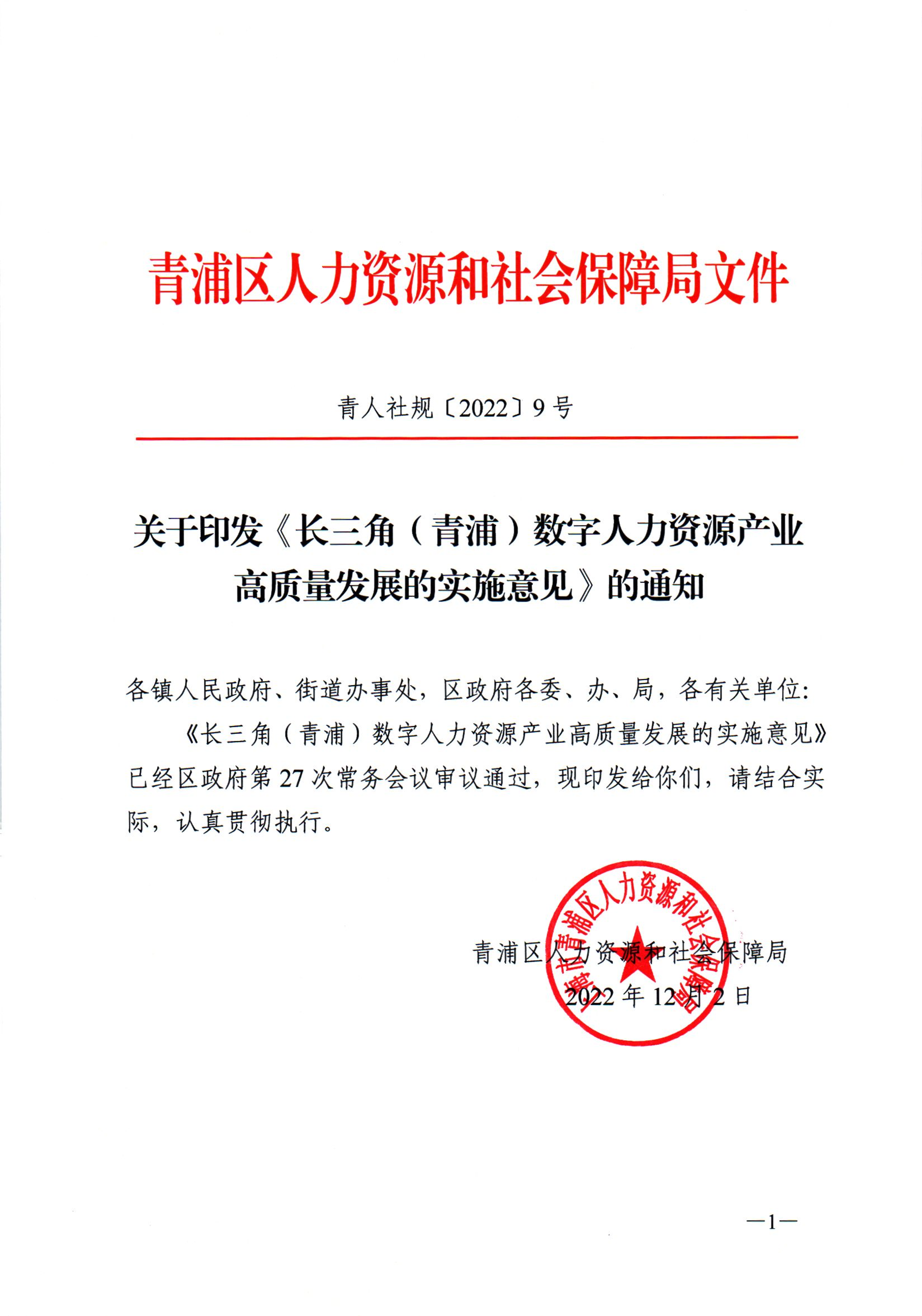 长三角(青浦)数字人力资源产业高质量发展的实施意见
