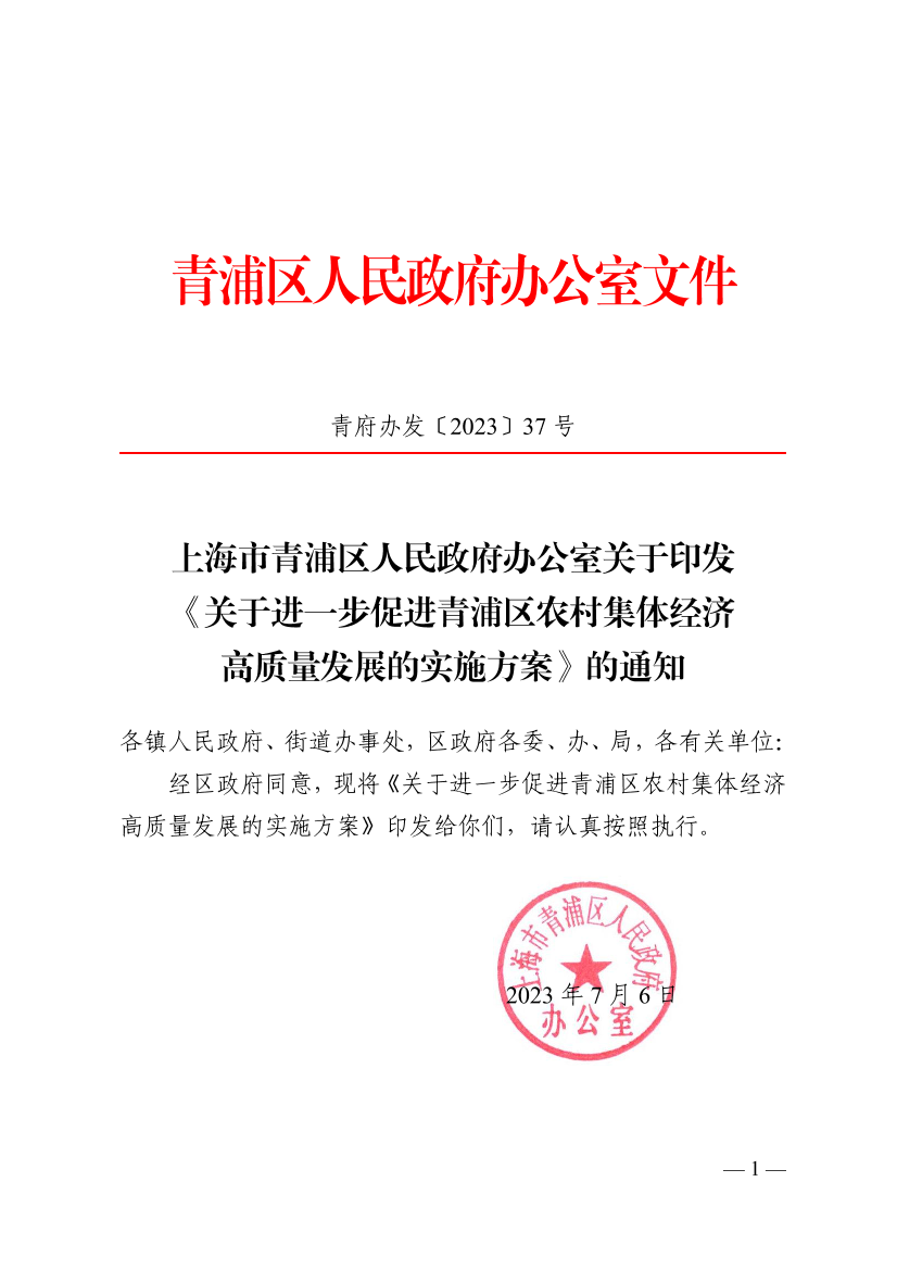 关于印发《关于进一步促进青浦区农村集体经济高质量发展的实施方案》的通知