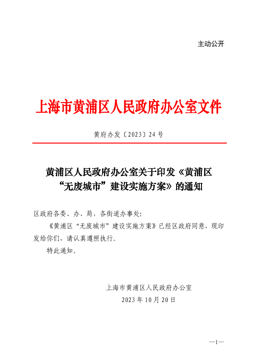 黄浦区人民政府办公室关于印发《黄浦区“无废城市”建设实施方案》的通知