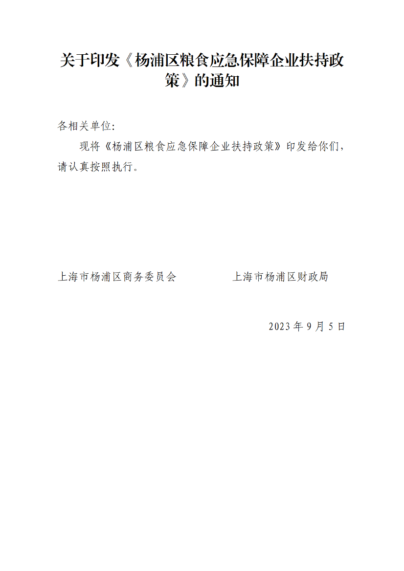 关于印发《杨浦区粮食应急保障企业扶持政策》的通知