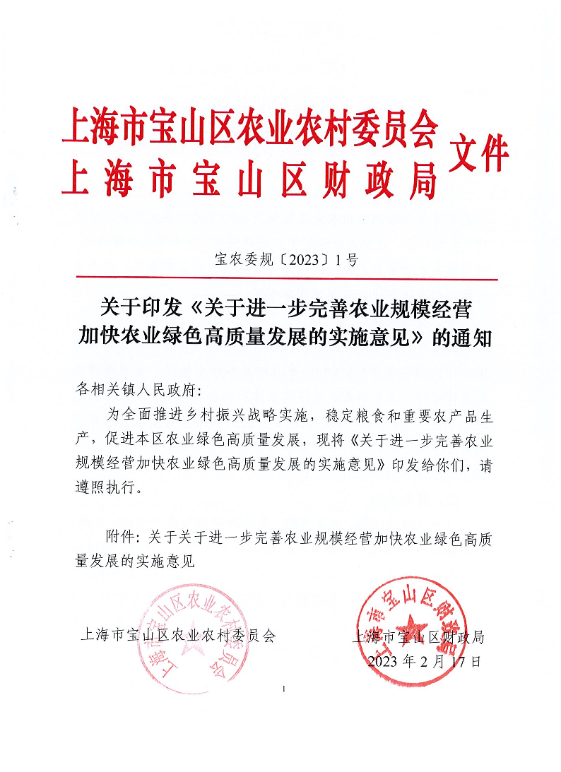 印发日期:2023-02-17 宝农委规〔2023〕1号