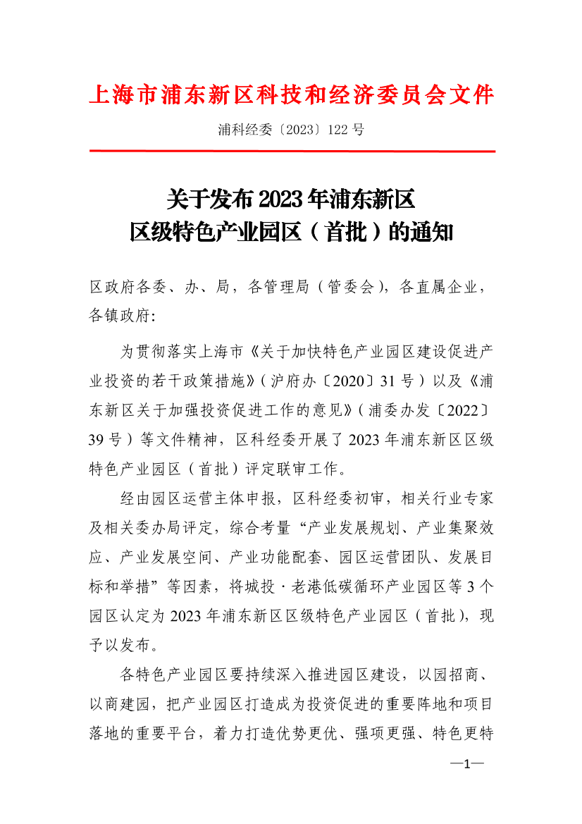 为贯彻落实上海市《关于加快特色产业园区建设促进产业投资的若干政策措施》(沪府办〔2020〕31号)以及《浦东新区关于加强投资促进工作的意见》(浦委办发〔2022〕39号)等文件精神,区科经委开展了2023年浦东新区区级特色产业园区(首批)评定联审工作。