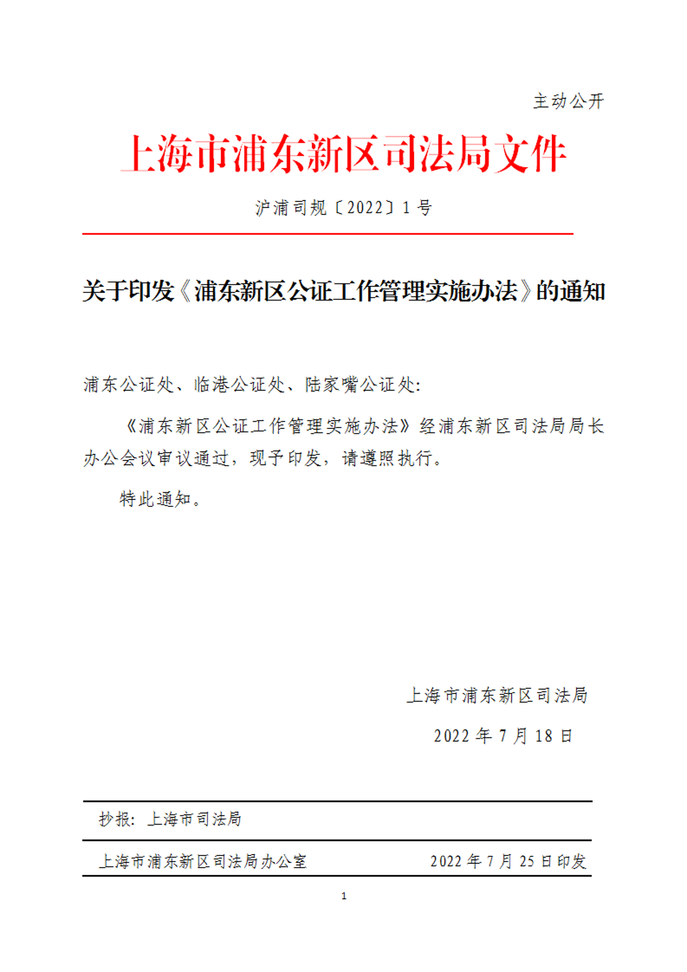 关于印发《浦东新区公证工作管理实施办法》的通知