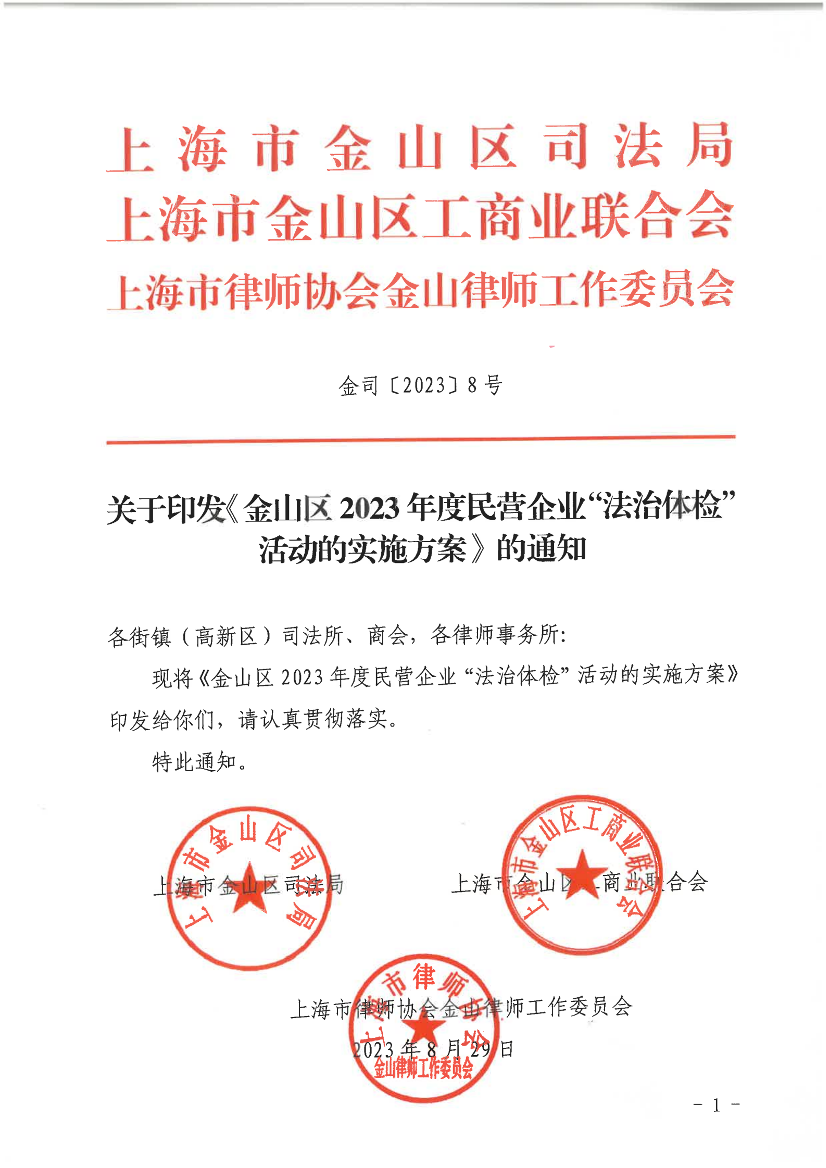 金山区2023年度民营企业“法治体检”活动的实施方案