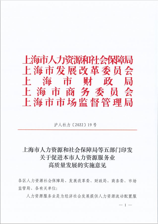 人力资源服务业是为经济社会发展提供人力资源流动配置服务的现代服务业重要门类,对促进社会化就业、更好发挥人力资源优势、服务经济社会发展具有重要意义。为贯彻落实人社部等五部门《关于推进新时代人力资源服务业高质量发展的意见》(人社部发〔2021〕89号),加快构筑与上海经济社会发展相适应的创新协同、开放包容、科学规范的人力资源服务体系,加快赋能本市新时代高水平人才高地建设,现就促进本市人力资源服务业高质量发展制定如下实施意见。