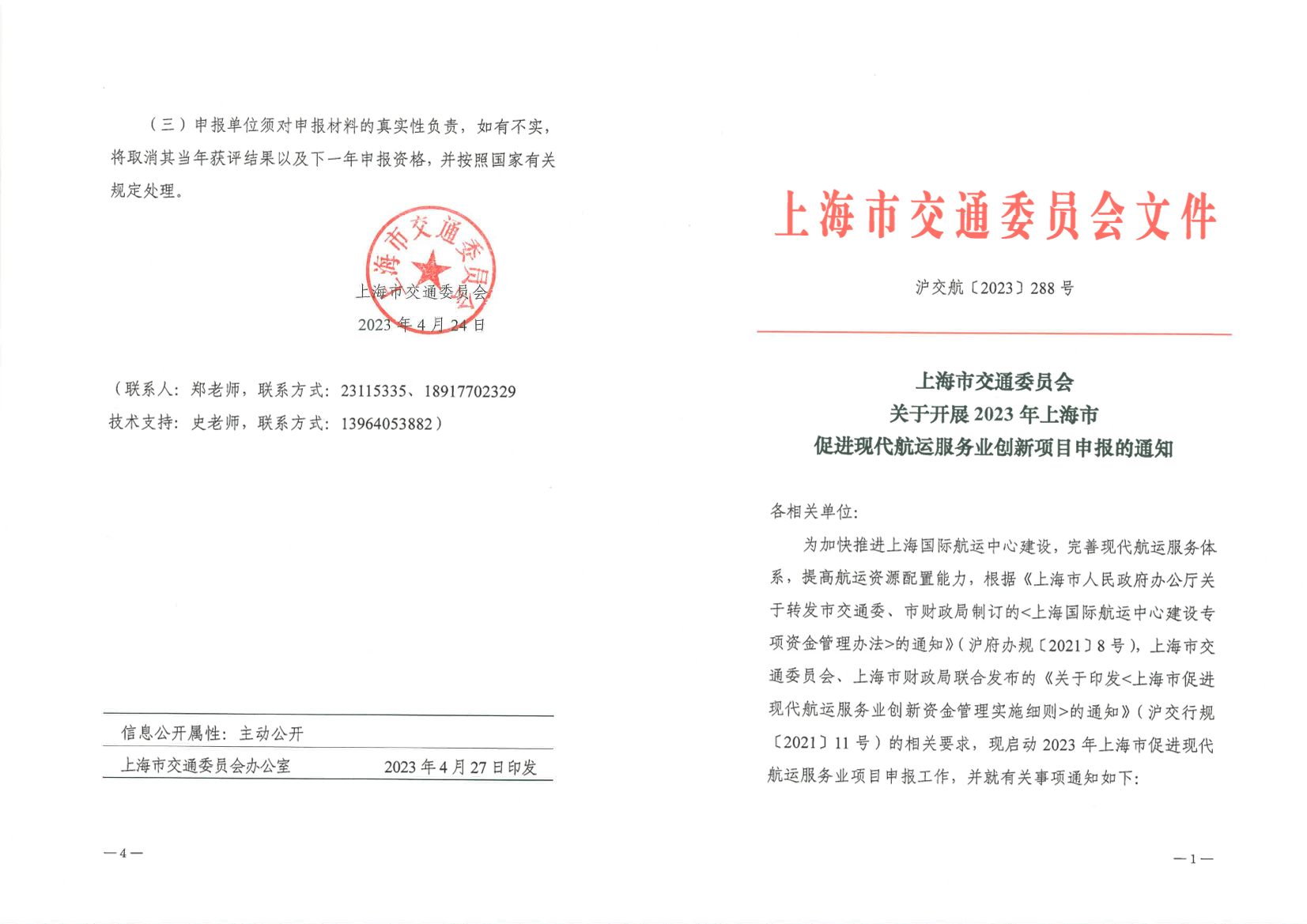 为加快推进上海国际航运中心建设,完善现代航运服务体系,提高航运资源配置能力,根据《上海市人民政府办公厅关于转发市交通委、市财政局制订的<上海国际航运中心建设专项资金管理办法>的通知》(沪府办规〔2021〕8号),上海市交通委员会、上海市财政局联合发布的《关于印发<上海市促进现代航运服务业创新资金管理实施细则>的通知》(沪交行规〔2021〕11号)的相关要求,现启动2023年上海市促进现代航运服务业项目申报工作,并就有关事项通知如下: