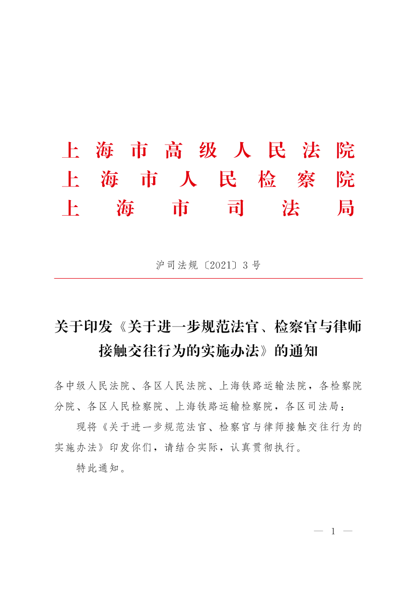 关于进一步规范法官、检察官与律师接触交往行为的实施办法