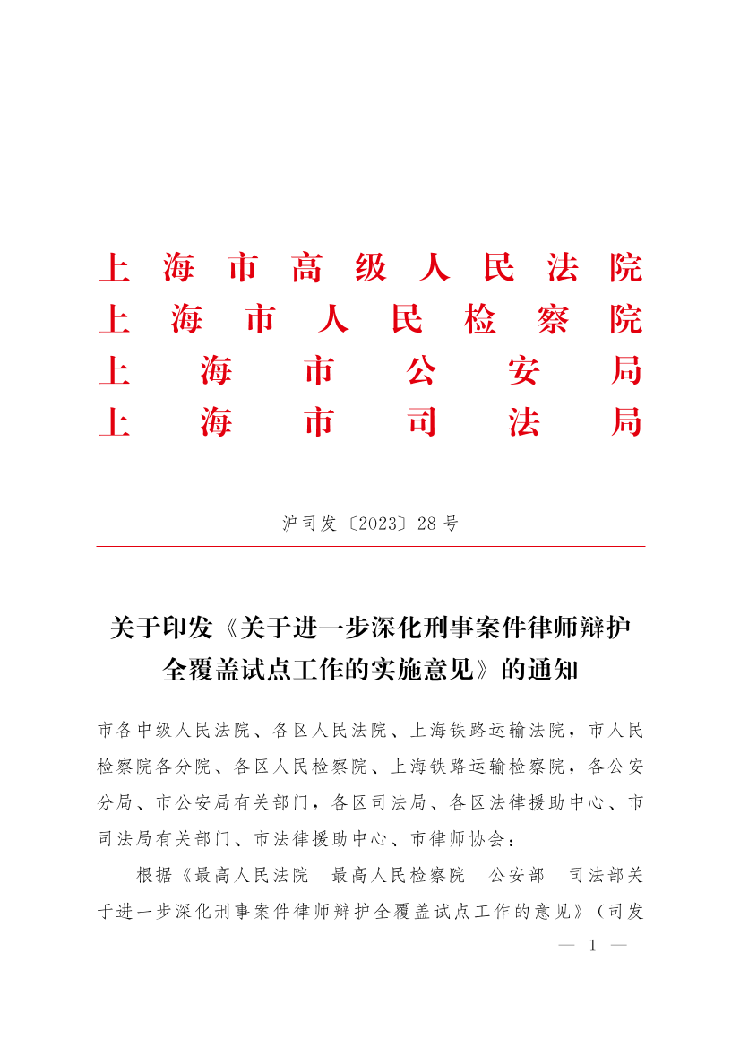 为贯彻落实刑事诉讼法、法律援助法及相关法律规定,进一步加强刑事案件犯罪嫌疑人、被告人人权司法保障,根据《最高人民法院 最高人民检察院 公安部 司法部关于进一步深化刑事案件律师辩护全覆盖试点工作的意见》等有关规定,结合本市实际,现就进一步深化本市刑事案件律师辩护全覆盖试点工作(以下简称“深化试点工作”)提出如下实施意见。