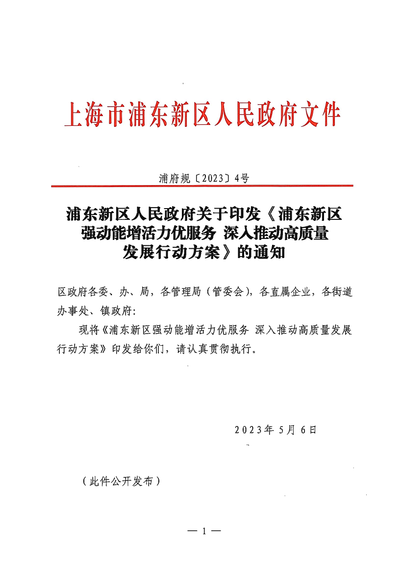 浦东新区人民政府关于印发《浦东新区强动能增活力优服务深入推动高质量发展行动方案》的通知