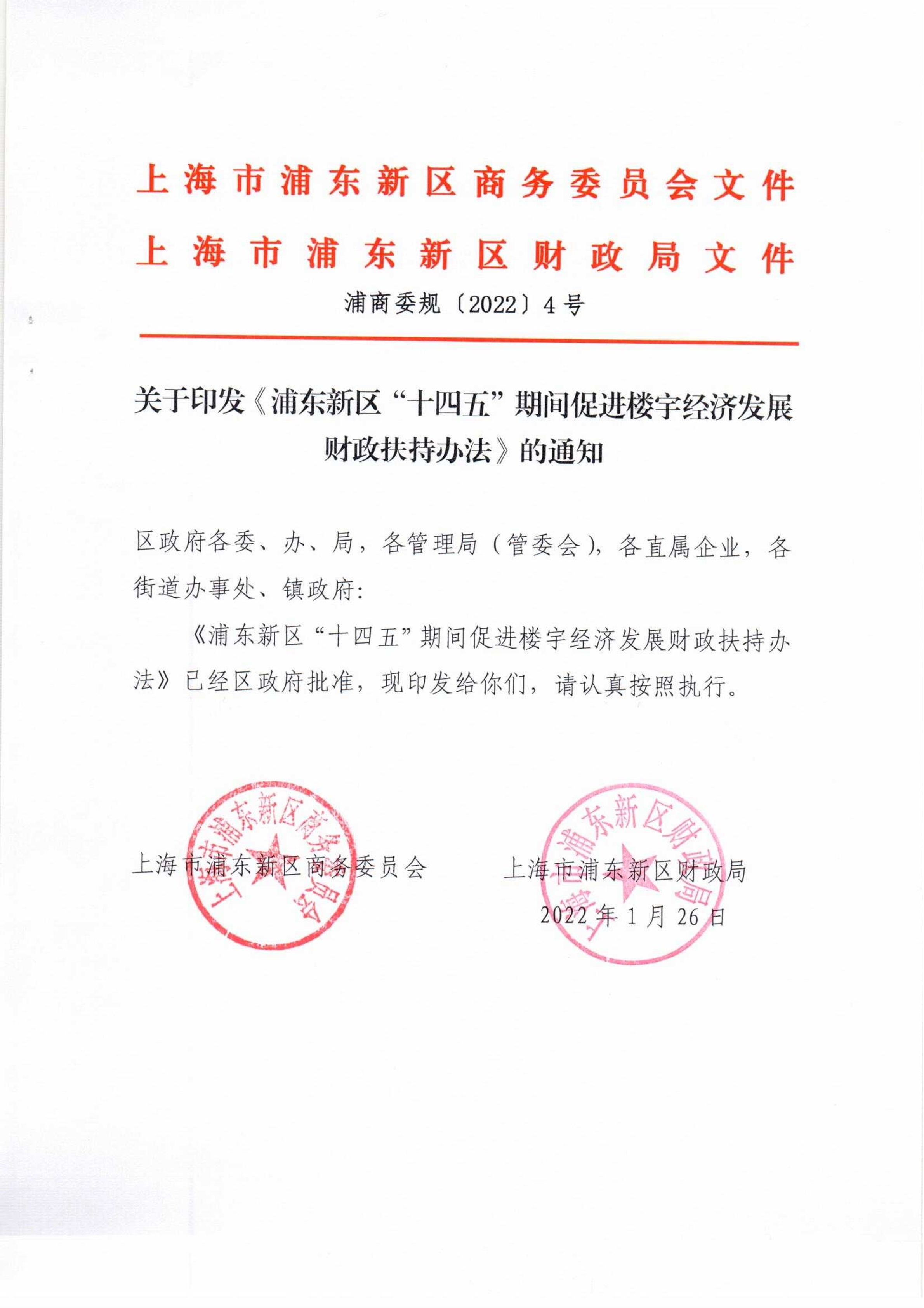 浦东新区“十四五”期间促进楼宇经济发展财政扶持办法