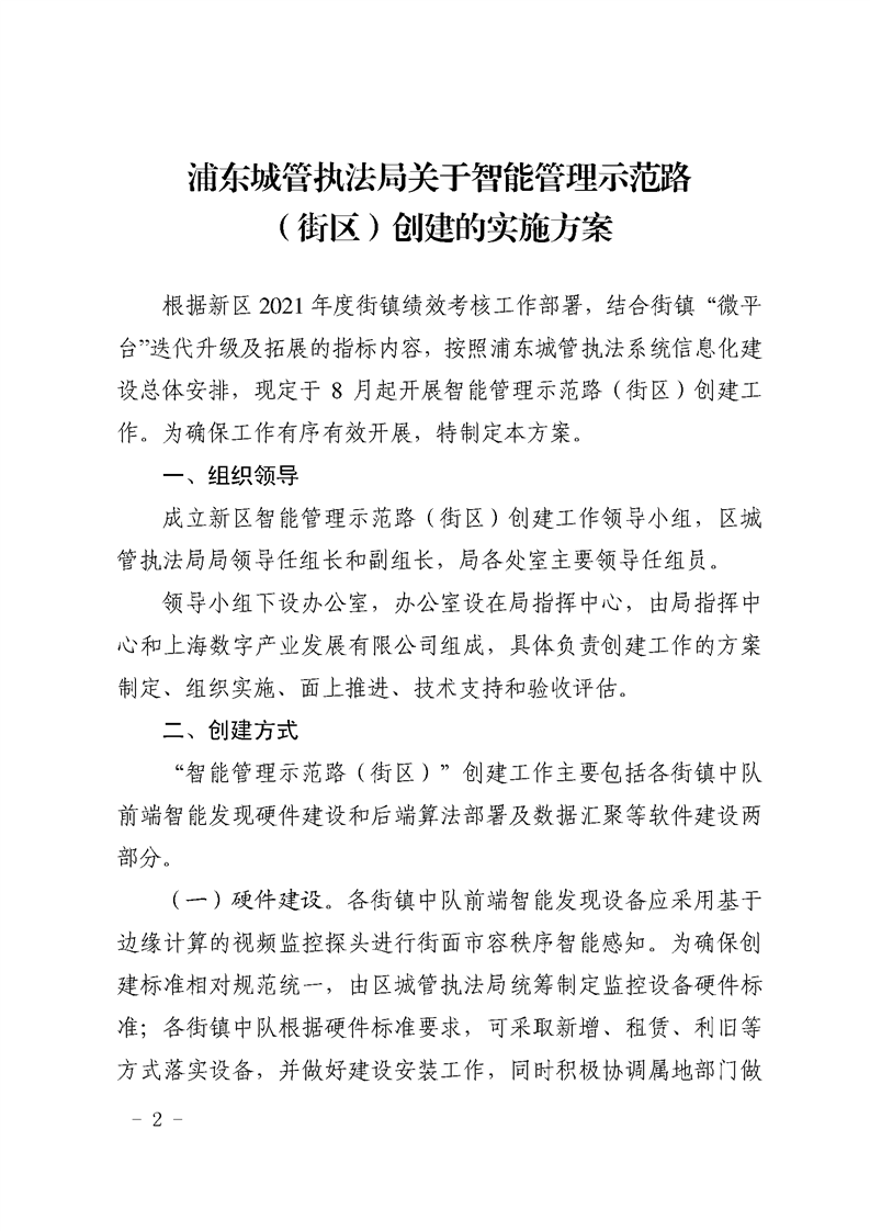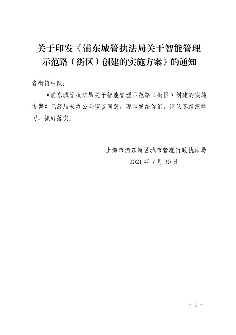 关于印发《浦东城管执法局关于智能管理示范路(街区)创建的实施方案》的通知