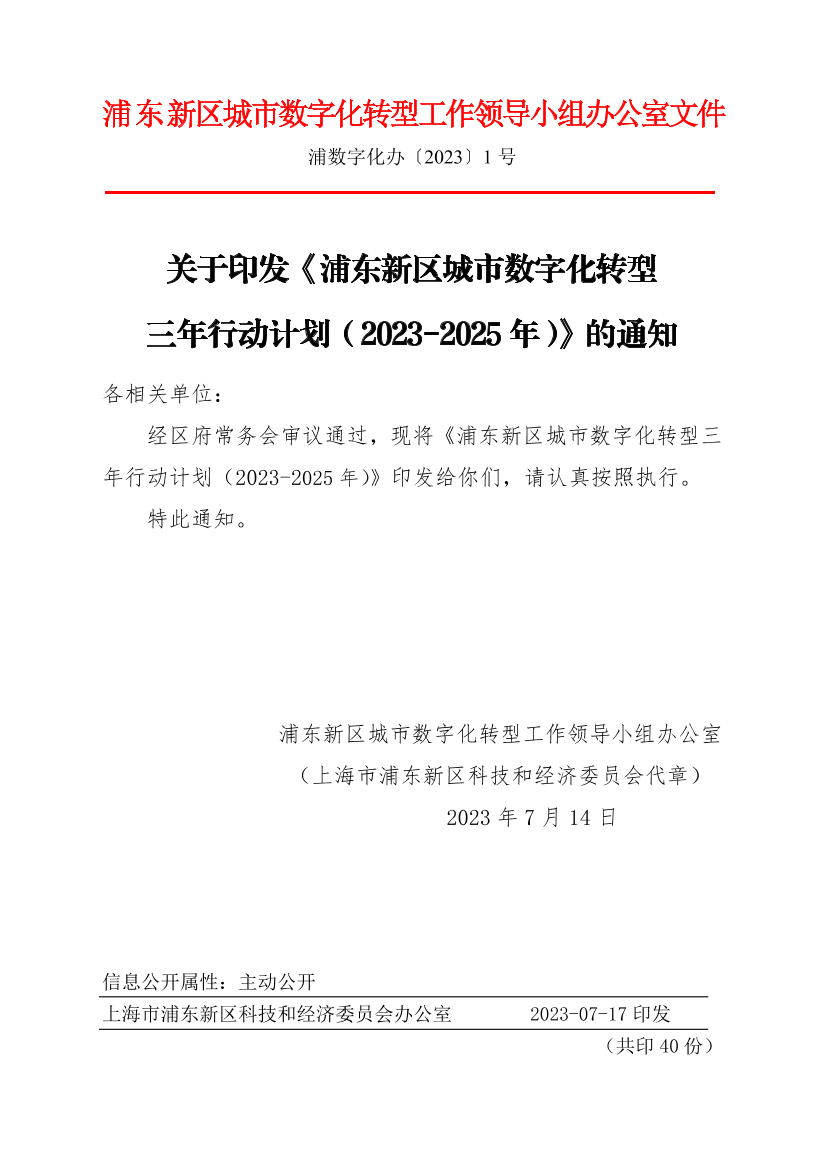 浦东新区城市数字化转型三年行动计划(2023-2025年)