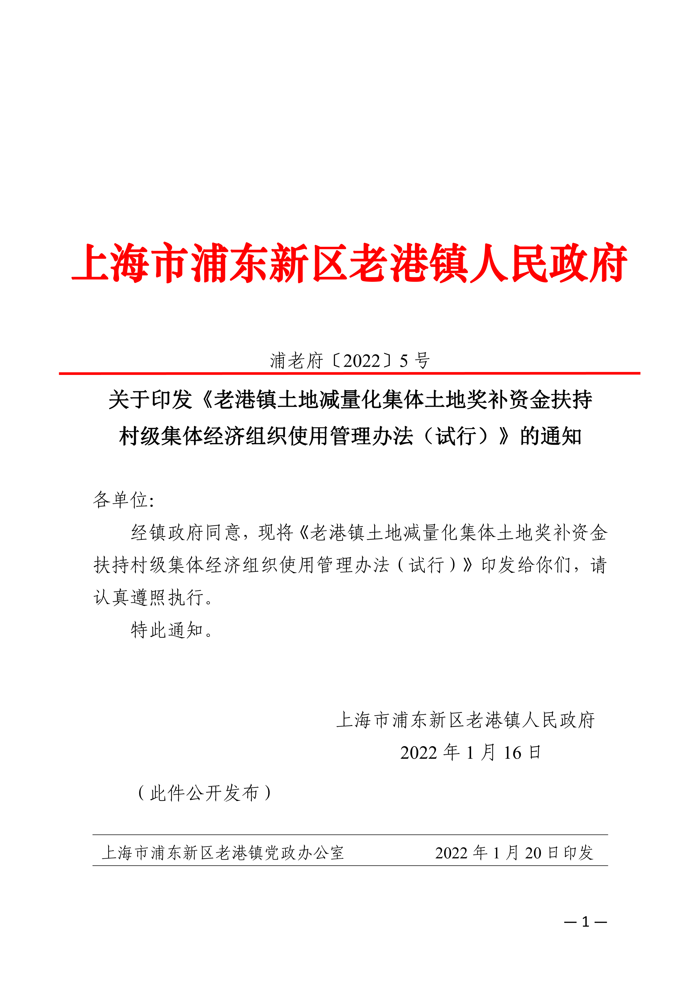 关于印发《老港镇土地减量化集体土地奖补资金扶持村级集体经济组织使用管理办法(试行)》的通知