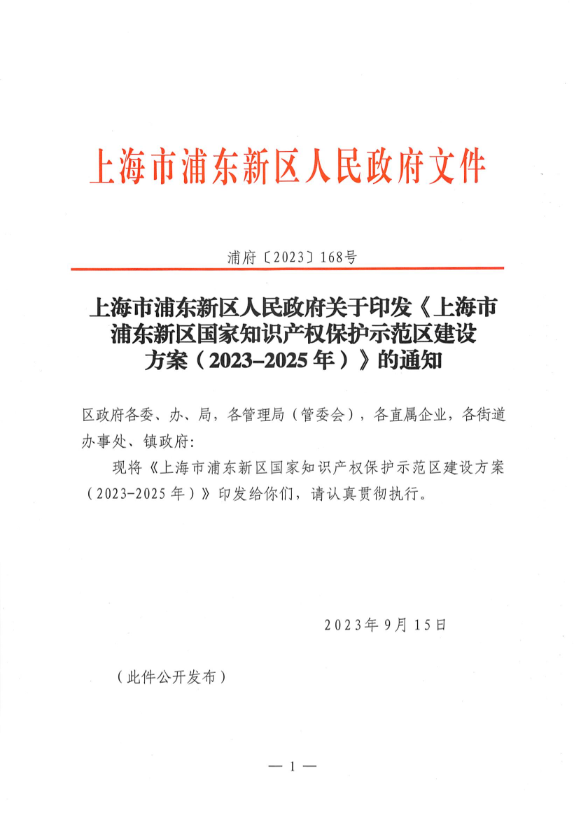 关于印发《上海市浦东新区国家知识产权保护示范区建设方案(2023-2025年)》的通知