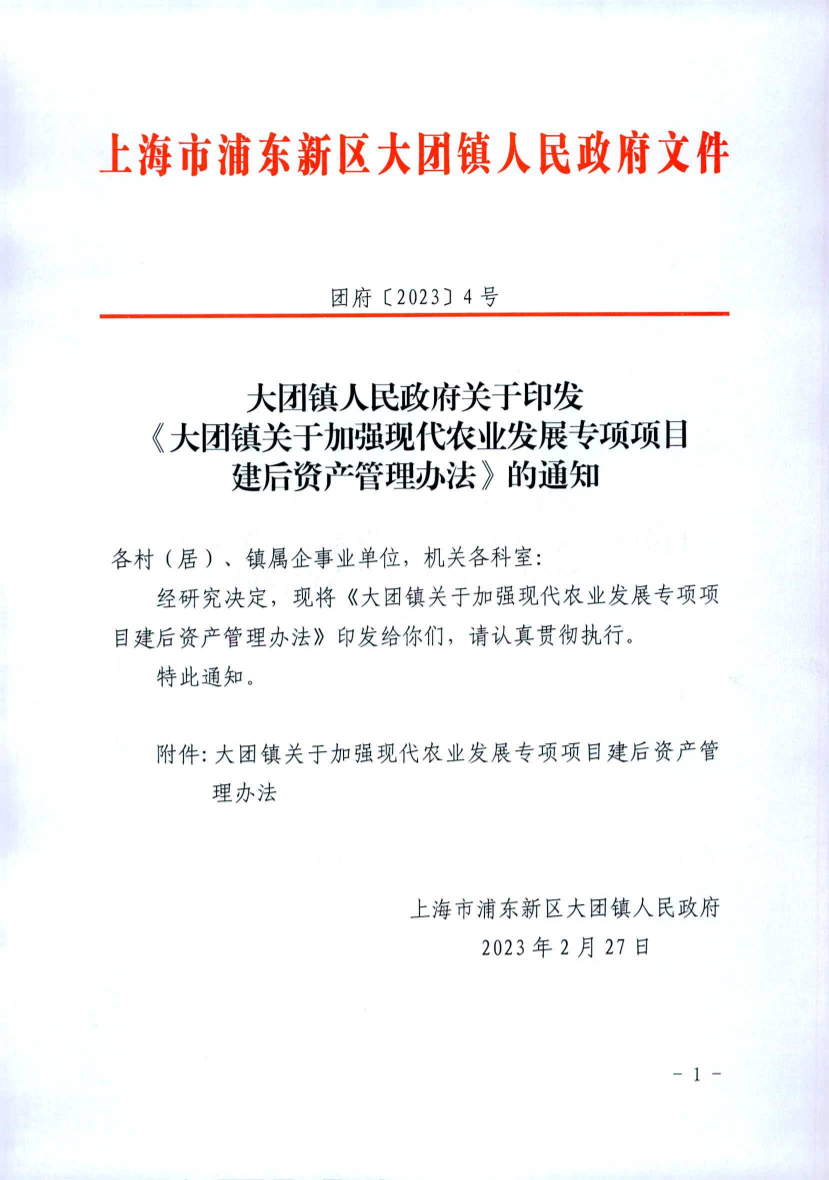 附件:大团镇关于加强现代农业发展专项项目建后资产管理办法