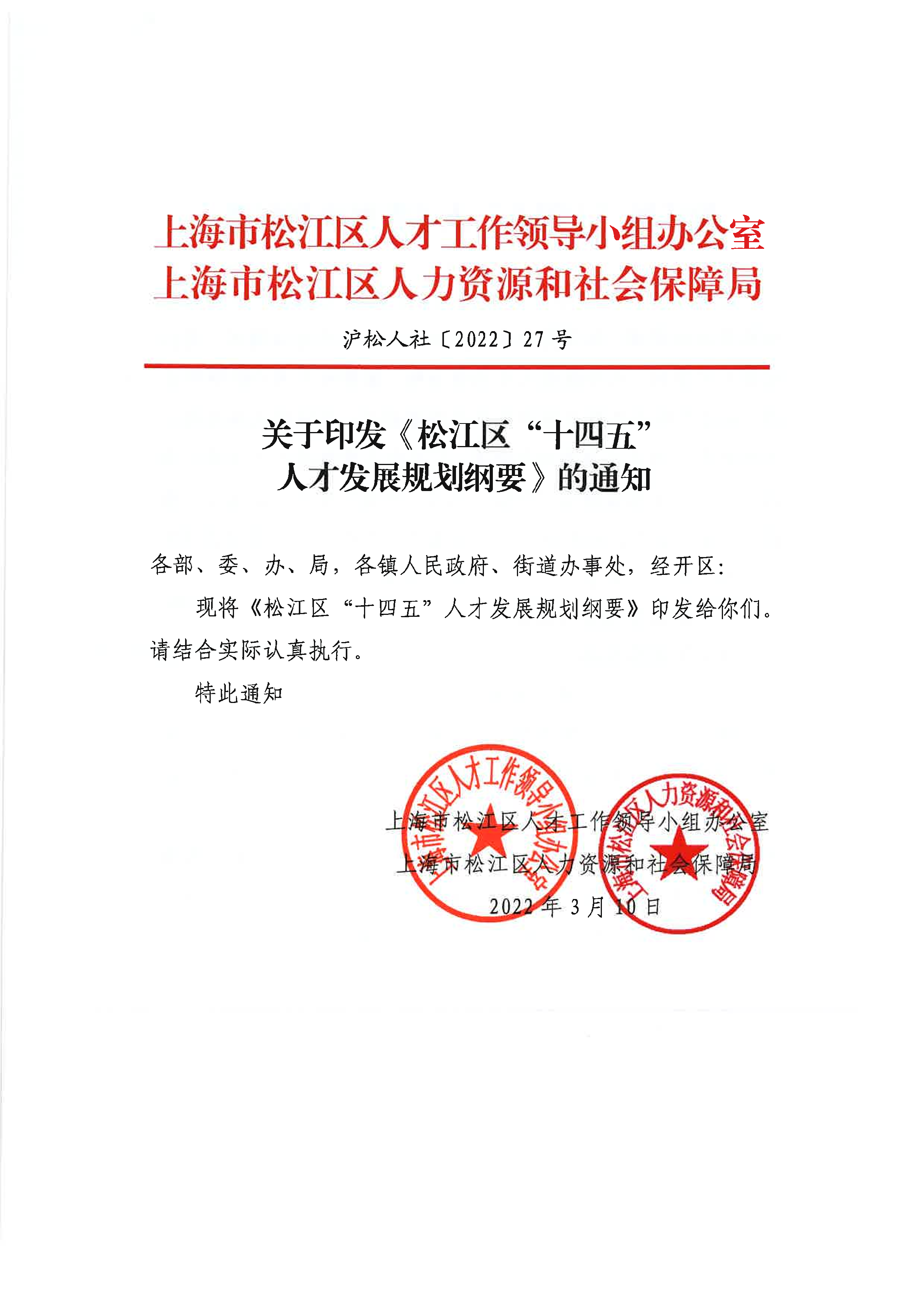 关于印发《松江区“十四五”人才发展规划纲要》的通知