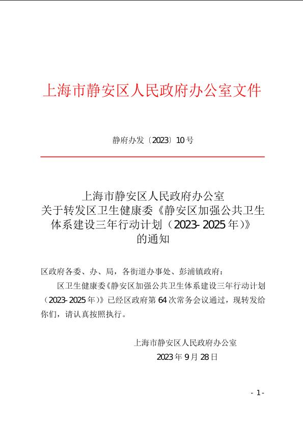 静安区加强公共卫生体系建设三年行动计划(2023-2025年)