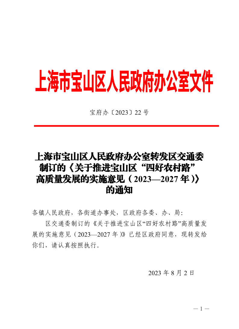 关于推进宝山区“四好农村路”高质量发展的实施意见(2023—2027年)