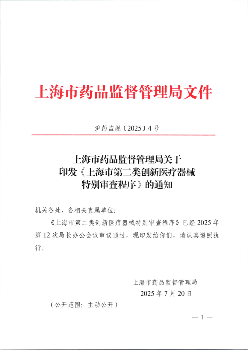 《上海市第二类创新医疗器械特别审查程序》已经2025年第12次局长办公会议审议通过,现印发给你们,请认真遵照执行。
