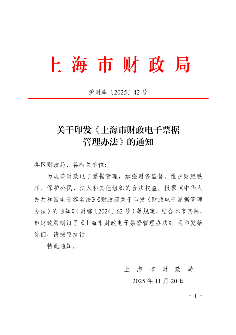 为规范财政电子票据管理,加强财务监督,维护财经秩序,保护公民、法人和其他组织的合法权益,根据《中华人民共和国电子签名法》《财政部关于印发〈财政电子票据管理办法〉的通知》(财综〔2024〕62号)等规定,结合本市实际,市财政局制订了《上海市财政电子票据管理办法》,现印发给你们,请按照执行。