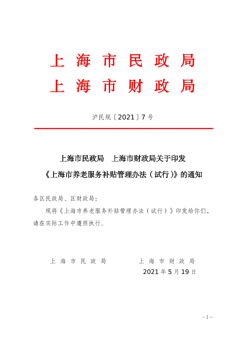 上 海 市 民 政 局 上 海 市 财 政 局