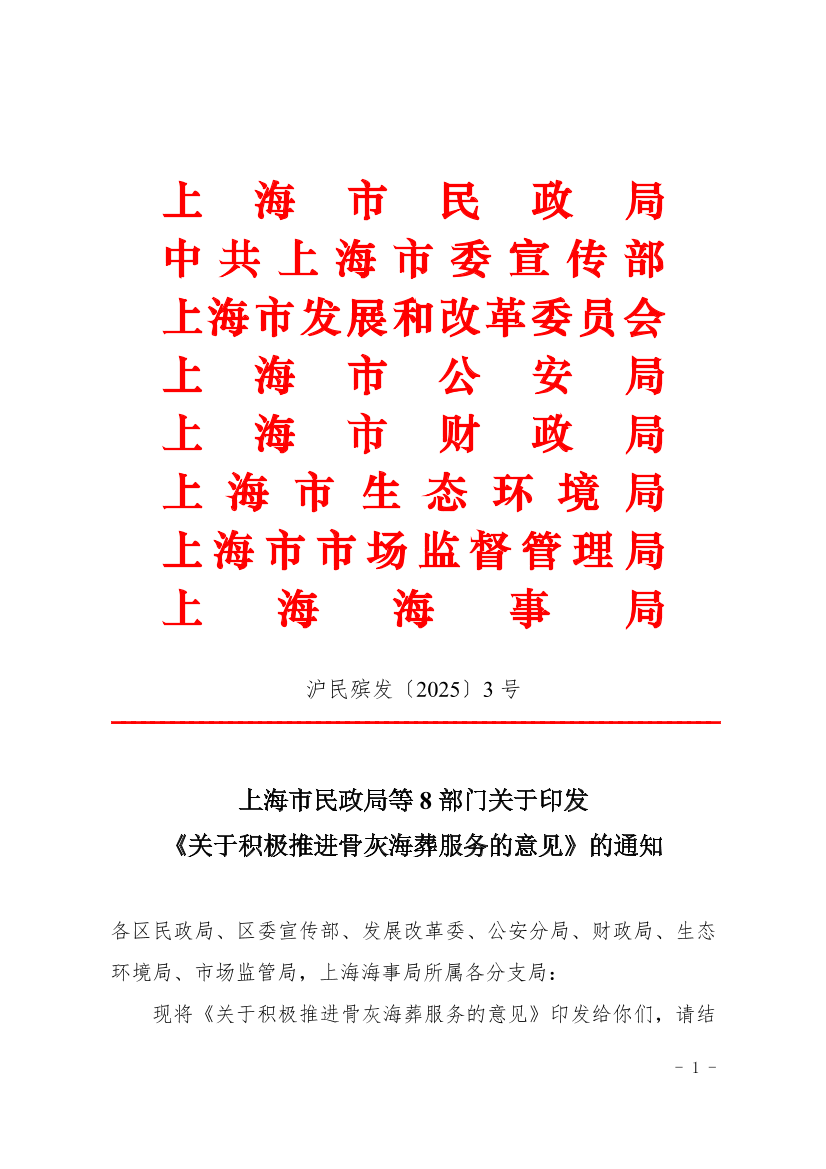 为深入贯彻落实党中央、国务院关于殡葬改革的决策部署,践行绿色发展理念,倡导文明节俭殡葬新风,现就积极推进我市骨灰海葬服务提出如下意见。