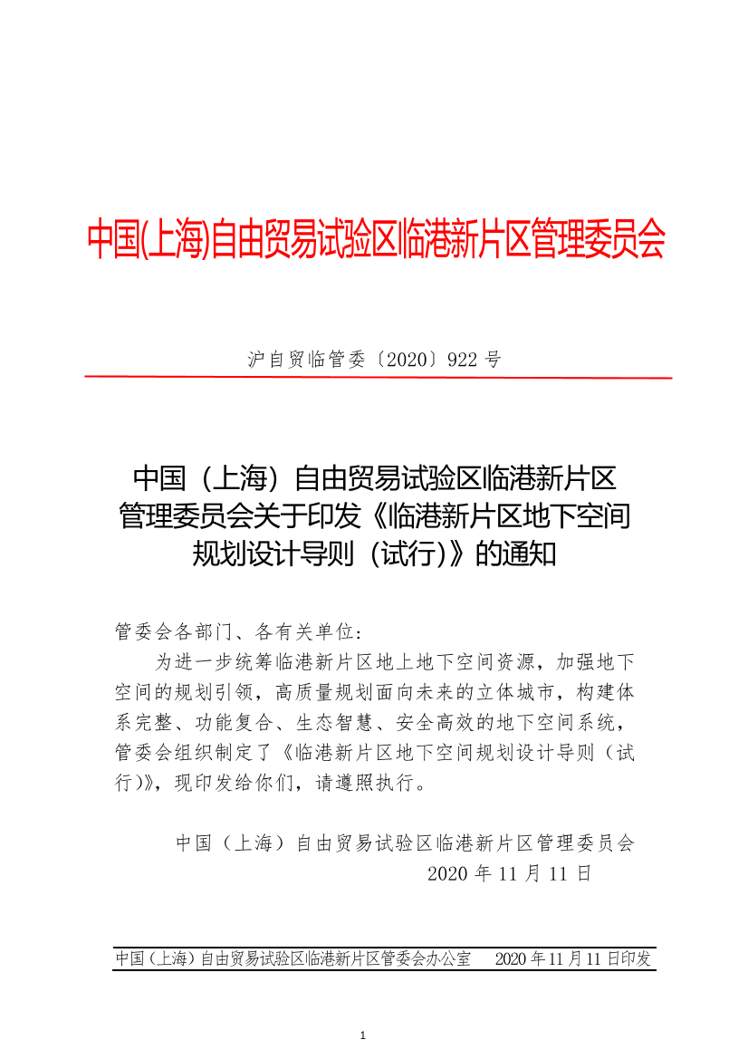 中国(上海)自由贸易试验区临港新片区管理委员会关于印发《临港新片区地下空间规划设计导则(试行)》的通知