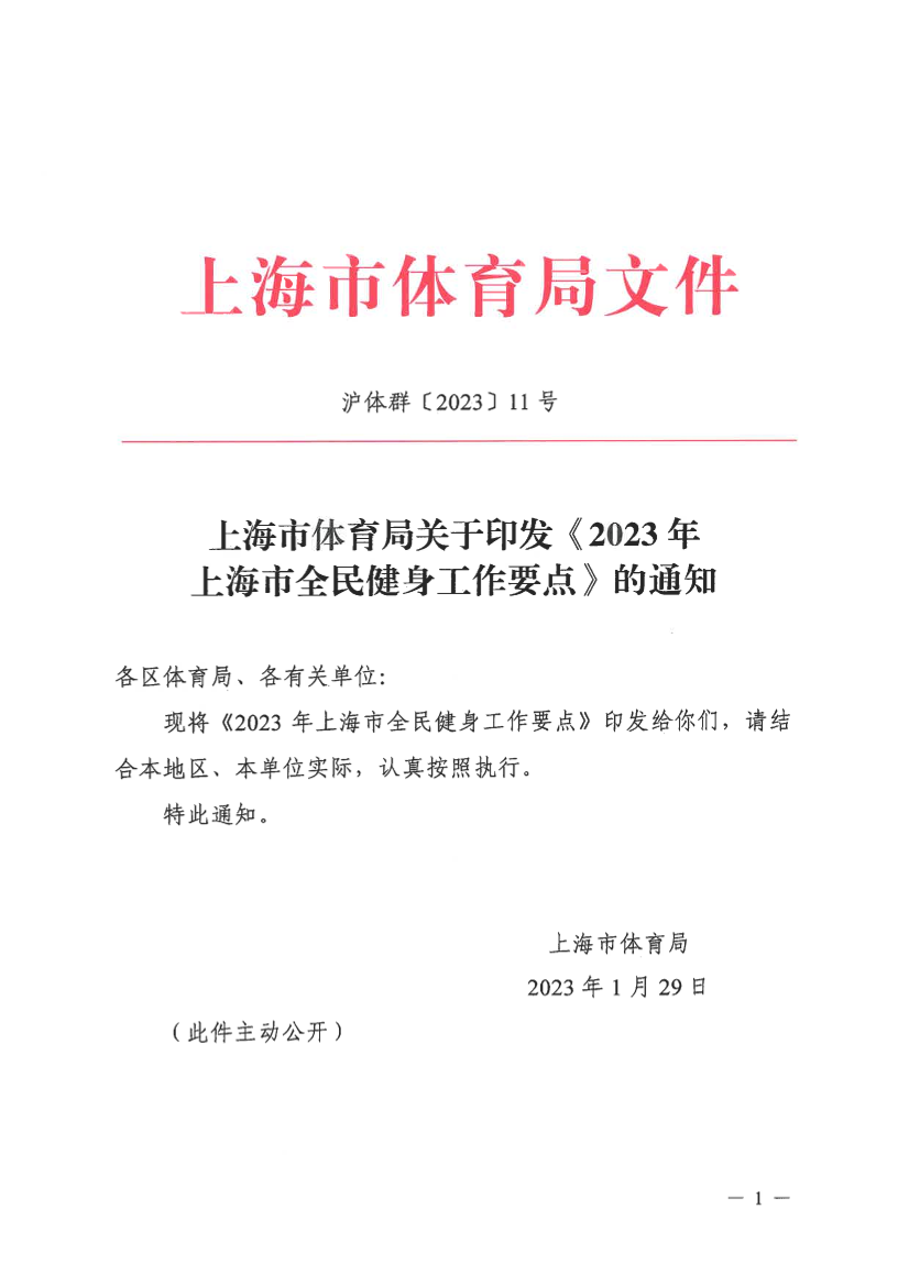 现将《2023年上海市全民健身工作要点》印发给你们,请结合本地区、本单位实际,认真按照执行。