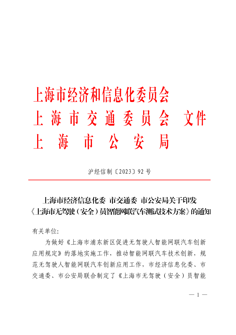 为做好《上海市浦东新区促进无驾驶人智能网联汽车创新应用规定》的落地实施工作,推动智能网联汽车技术创新,规范无驾驶人智能网联汽车创新应用工作,市经济信息化委、市交通委、市公安局联合制定了《上海市无驾驶(安全)员智能网联汽车测试技术方案》。现印发给你们,请结合实际认真贯彻执行。