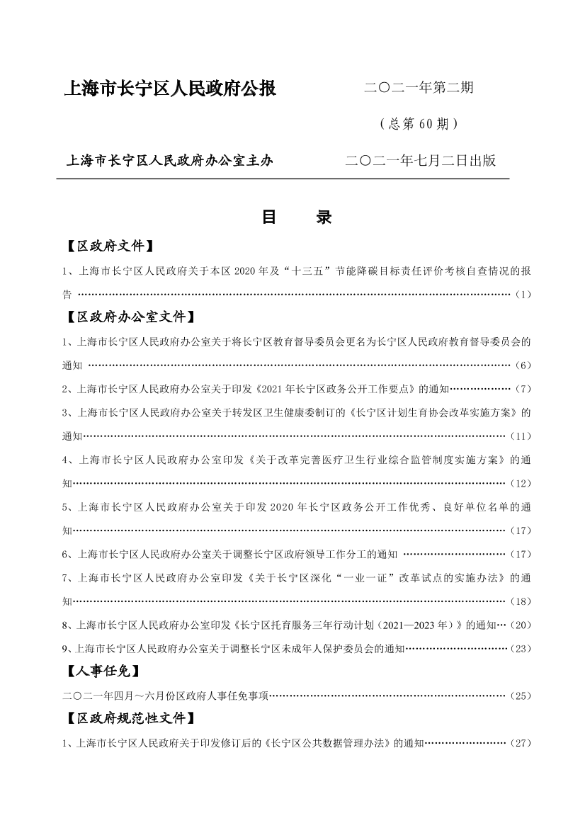 2、上海市长宁区人民政府办公室关于印发《2021年长宁区政务公开工作要点》的通知………………(7)
