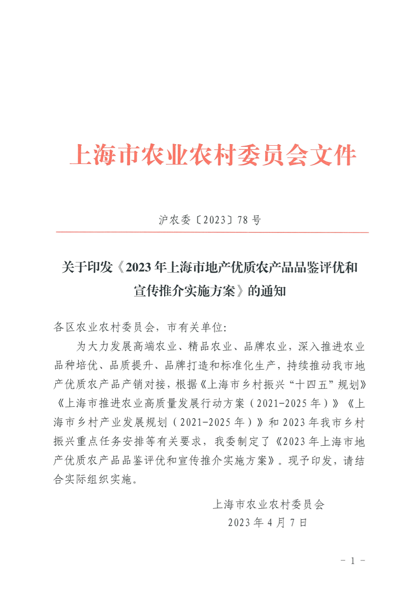 2023年上海市地产优质农产品品鉴评优和宣传推介实施方案