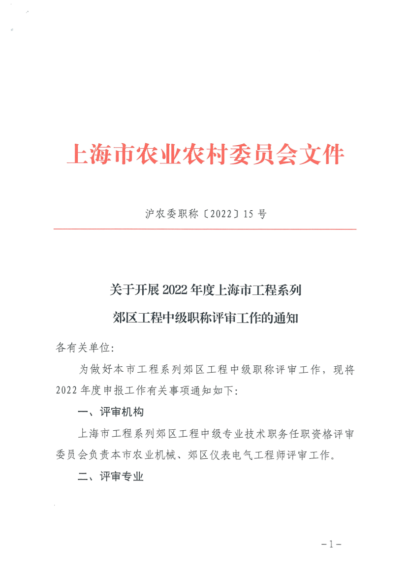 为做好本市工程系列郊区工程中级职称评审工作,现将2022年度申报工作有关事项通知如下: