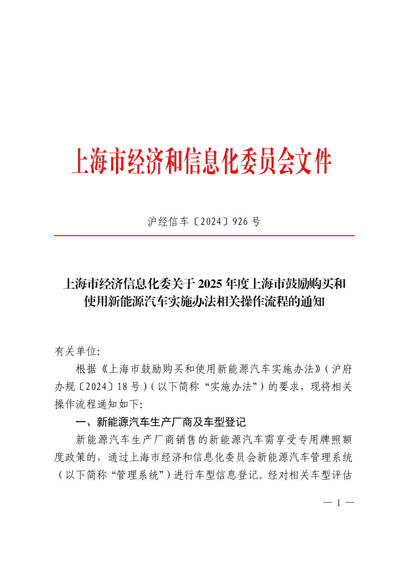 根据《上海市鼓励购买和使用新能源汽车实施办法》(沪府办规〔2024〕18号)(以下简称“实施办法”)的要求,现将相关操作流程通知如下: