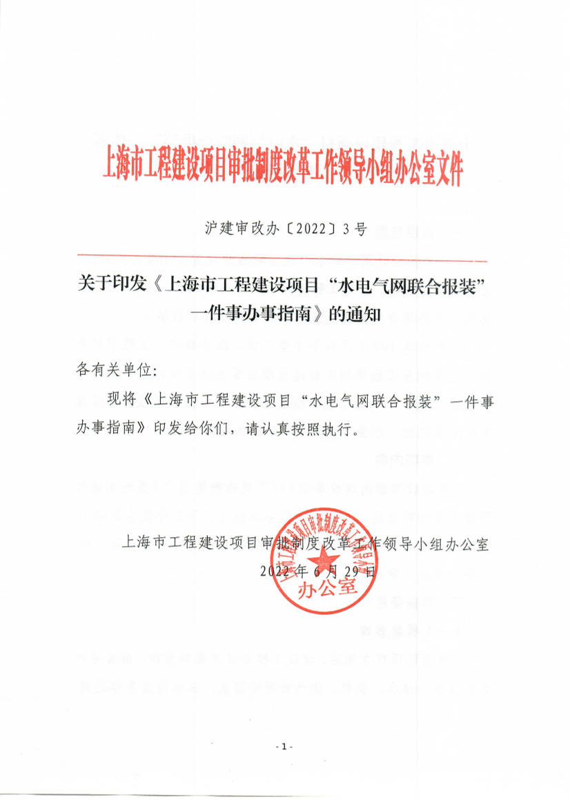 现将《上海市工程建设项目“水电气网联合报装”一件事办事指南》印发给你们,请认真按照执行。