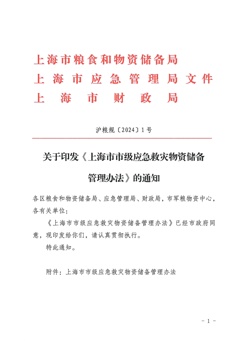 附件:上海市市级应急救灾物资储备管理办法