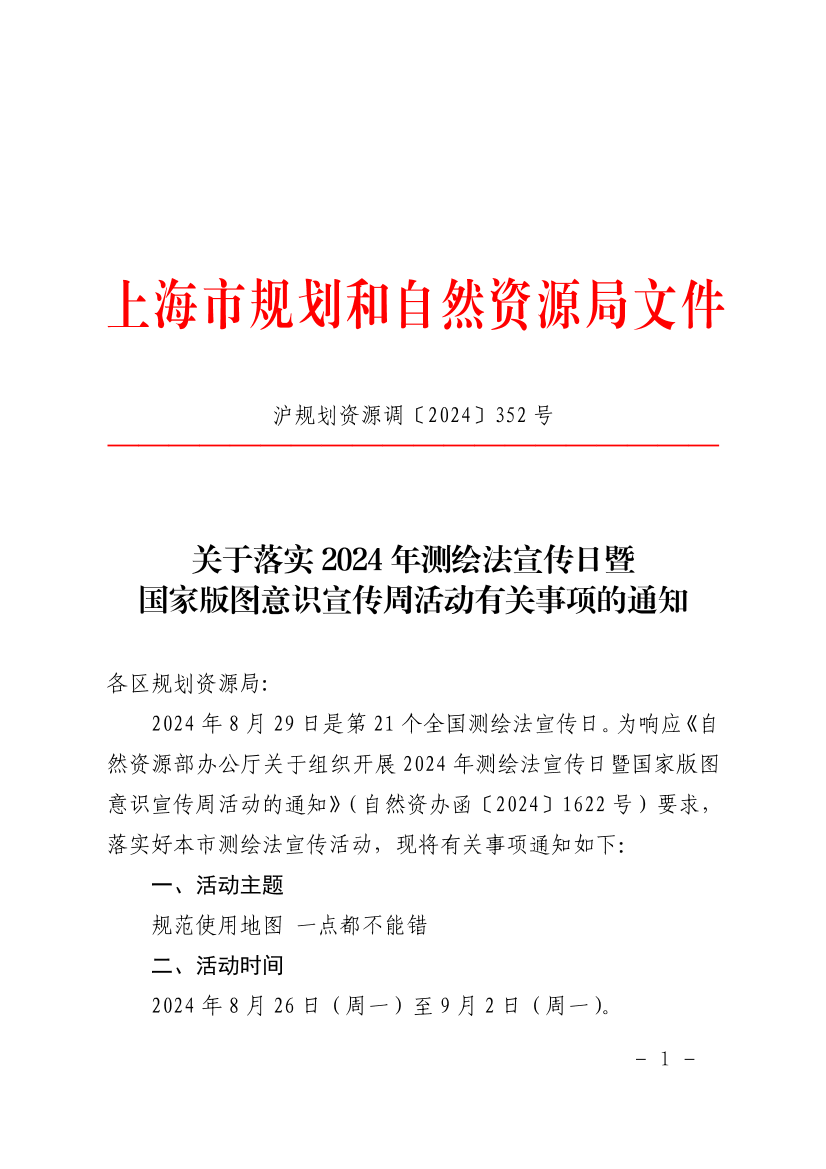 2024年8月29日是第21个全国测绘法宣传日。为响应《自然资源部办公厅关于组织开展2024年测绘法宣传日暨国家版图意识宣传周活动的通知》(自然资办函〔2024〕1622号)要求,落实好本市测绘法宣传活动,现将有关事项通知如下: