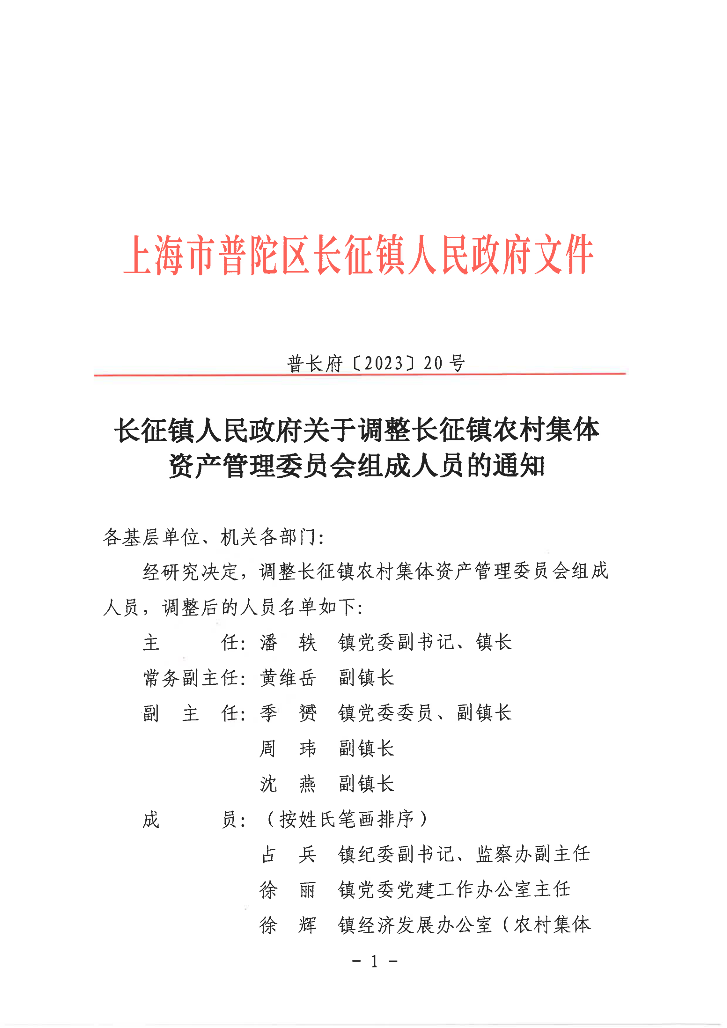 经研究决定,调整长征镇农村集体资产管理委员会组成人员,调整后的人员名单如下: