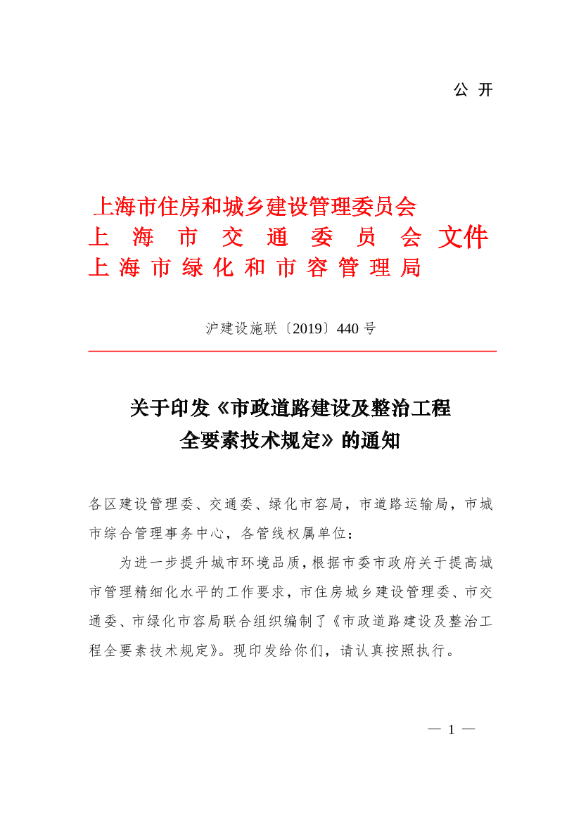 关于印发《市政道路建设及整治工程全要素技术规定》的通知