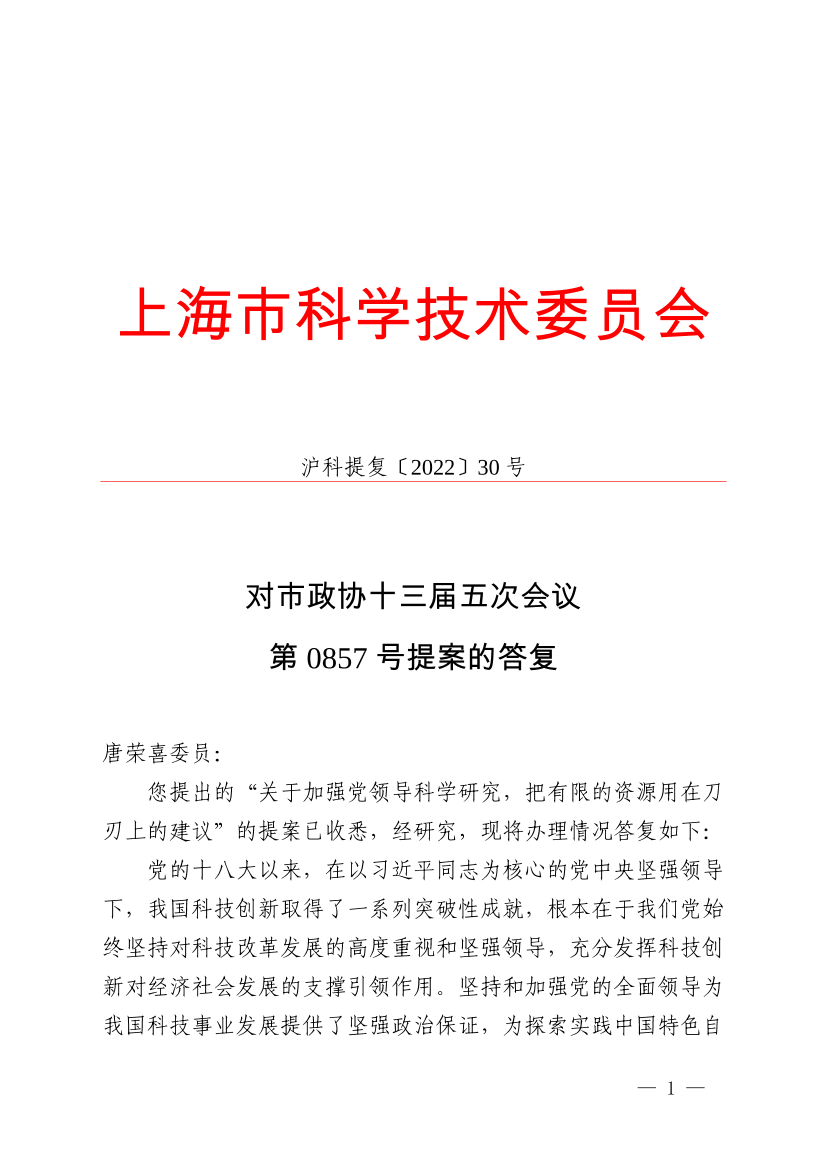 您提出的“关于加强党领导科学研究,把有限的资源用在刀刃上的建议”的提案已收悉,经研究,现将办理情况答复如下: