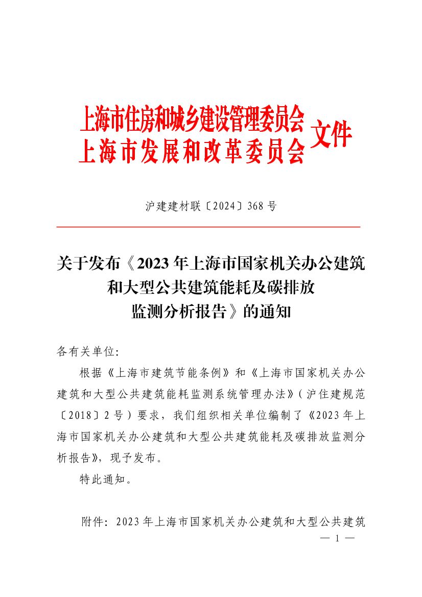 关于发布《 2023年上海市国家机关办公建筑和大型公共建筑能耗及碳排放监测分析报告》的通知