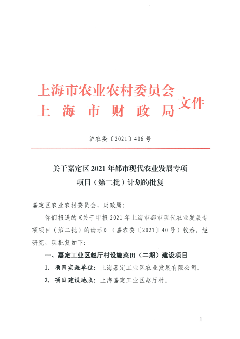 你们报送的《关于申报2021年上海市都市现代农业发展专项项目(第二批)的请示》(嘉农委〔2021〕40号)收悉。经研究,现批复如下: