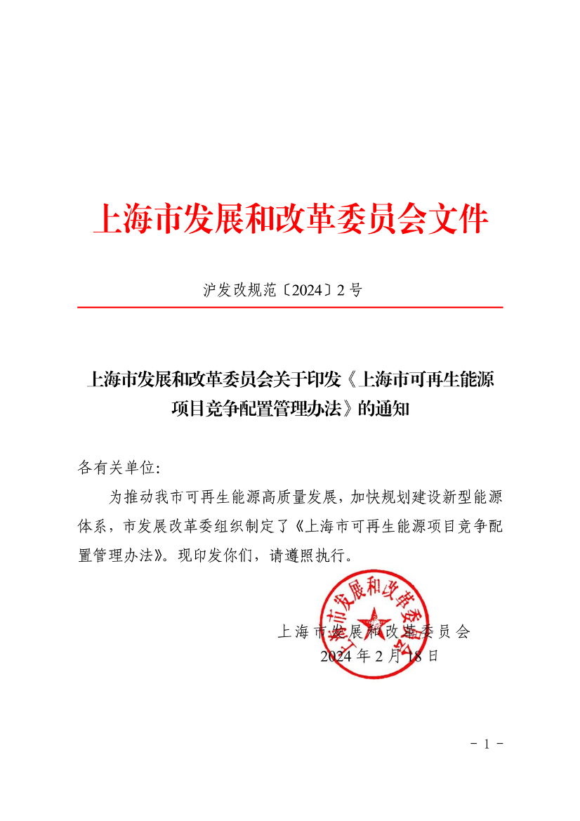 为推动我市可再生能源高质量发展,加快规划建设新型能源体系,市发展改革委组织制定了《上海市可再生能源项目竞争配置管理办法》。现印发你们,请遵照执行。