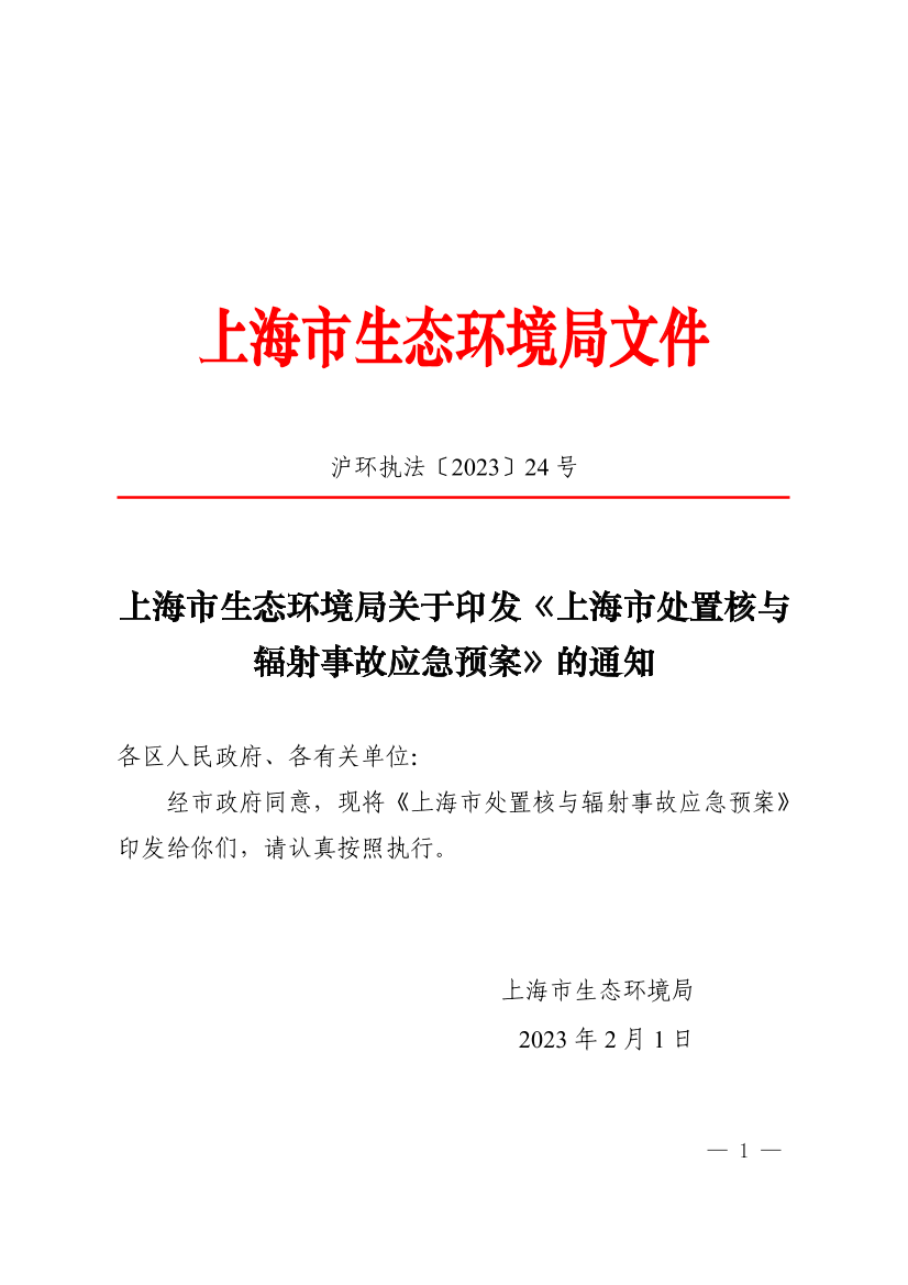 经市政府同意,现将《上海市处置核与辐射事故应急预案》印发给你们,请认真按照执行。