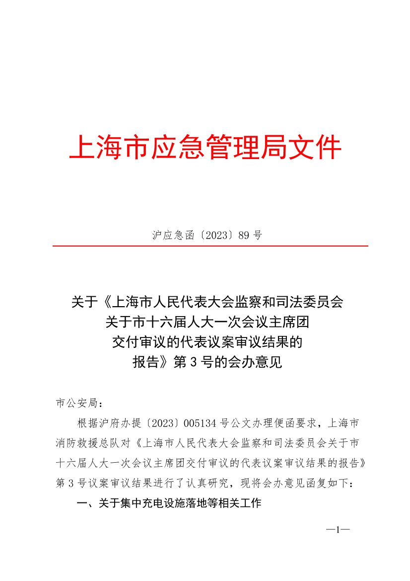 根据沪府办提〔2023〕005134号公文办理便函要求,上海市消防救援总队对《上海市人民代表大会监察和司法委员会关于市十六届人大一次会议主席团交付审议的代表议案审议结果的报告》第3号议案审议结果进行了认真研究,现将会办意见函复如下: