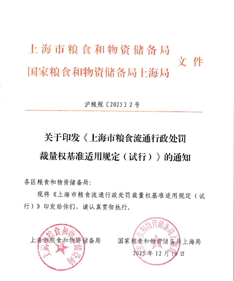 现将《上海市粮食流通行政处罚裁量权基准适用规定(试行)》印发给你们,请认真贯彻执行。
