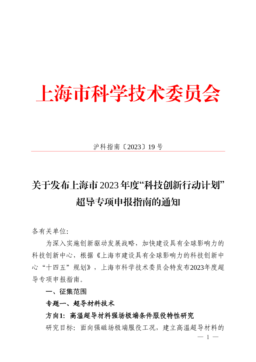为深入实施创新驱动发展战略,加快建设具有全球影响力的科技创新中心,根据《上海市建设具有全球影响力的科技创新中心“十四五”规划》,上海市科学技术委员会特发布2023年度超导专项申报指南。