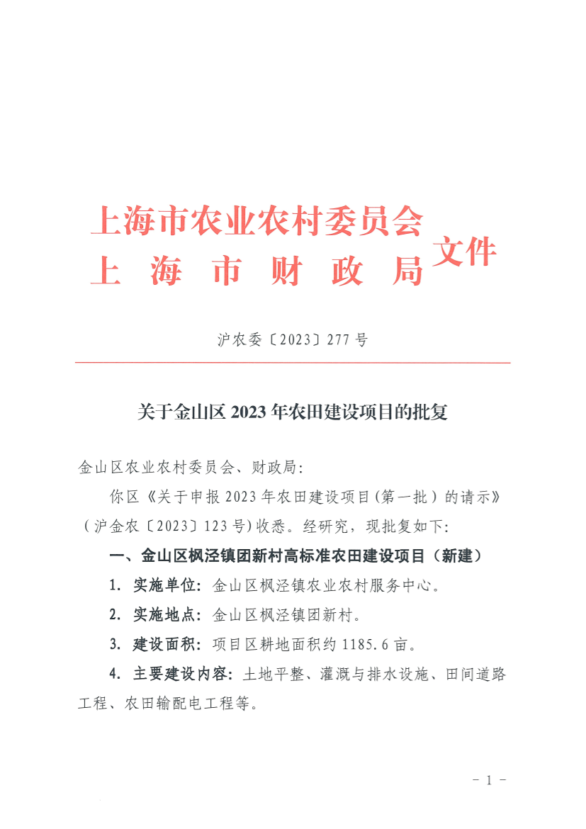 一、金山区枫泾镇团新村高标准农田建设项目(新建)