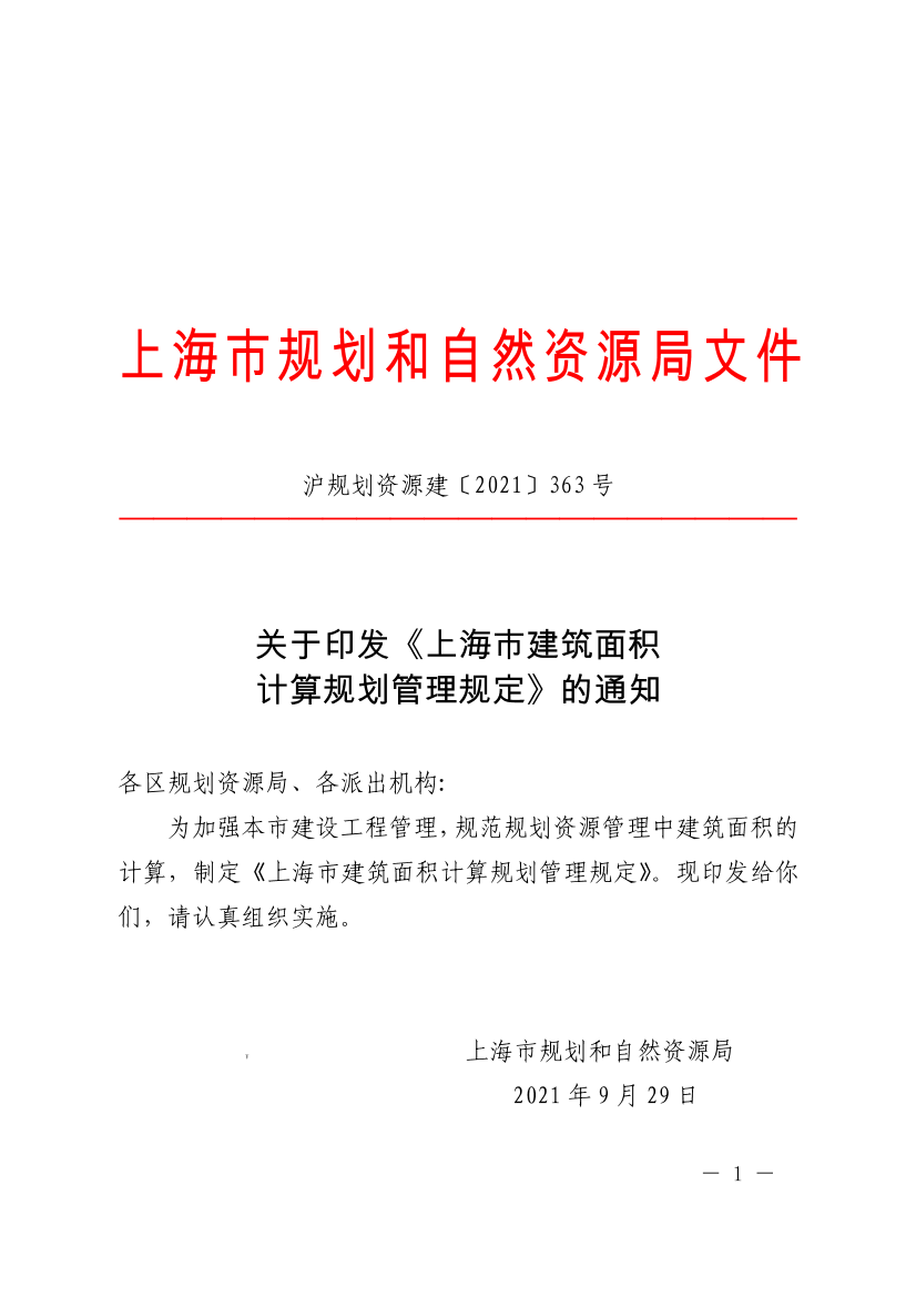 关于印发《上海市建筑面积计算规划管理规定》的通知